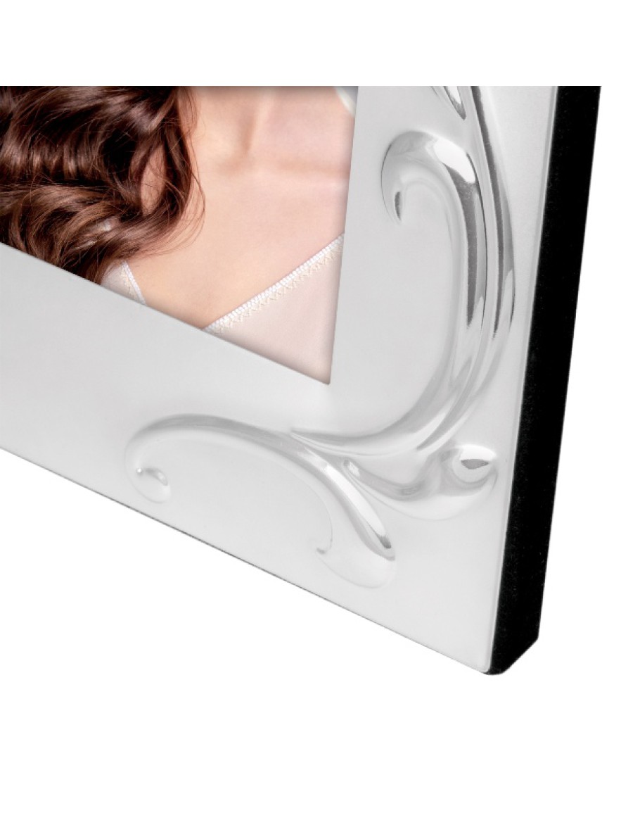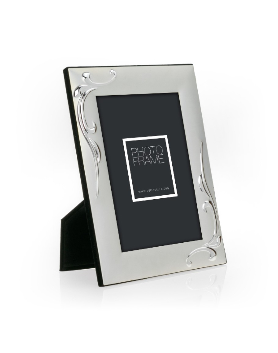 Металлическая рамка с посеребрением ZEP Silver Frame имеет матовую отделку, декорирована рельефным профилем, выполнена в элегантном классическом стиле. У рамки бархатная спинка и ножка для установки на поверхность. Упакована в коробку.