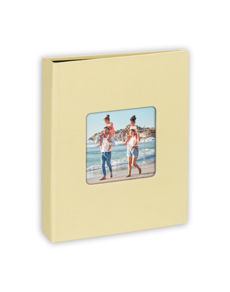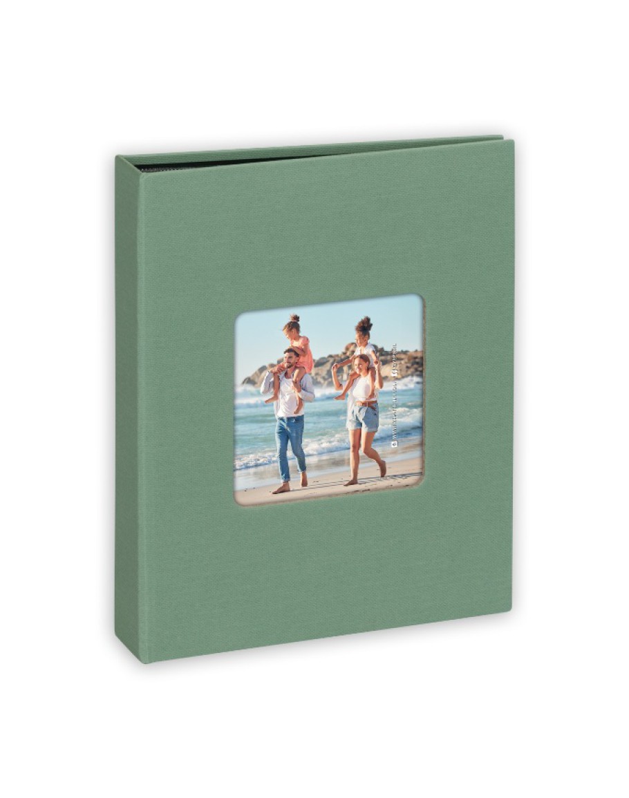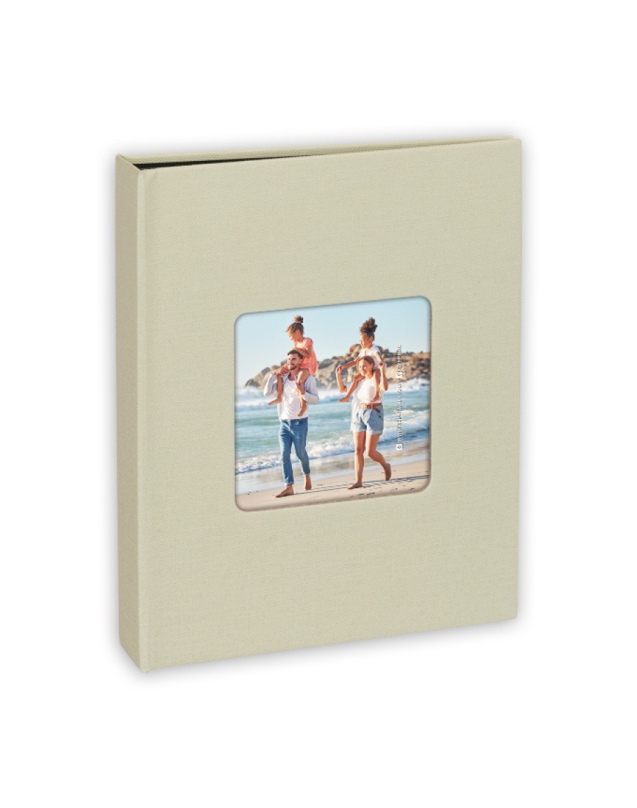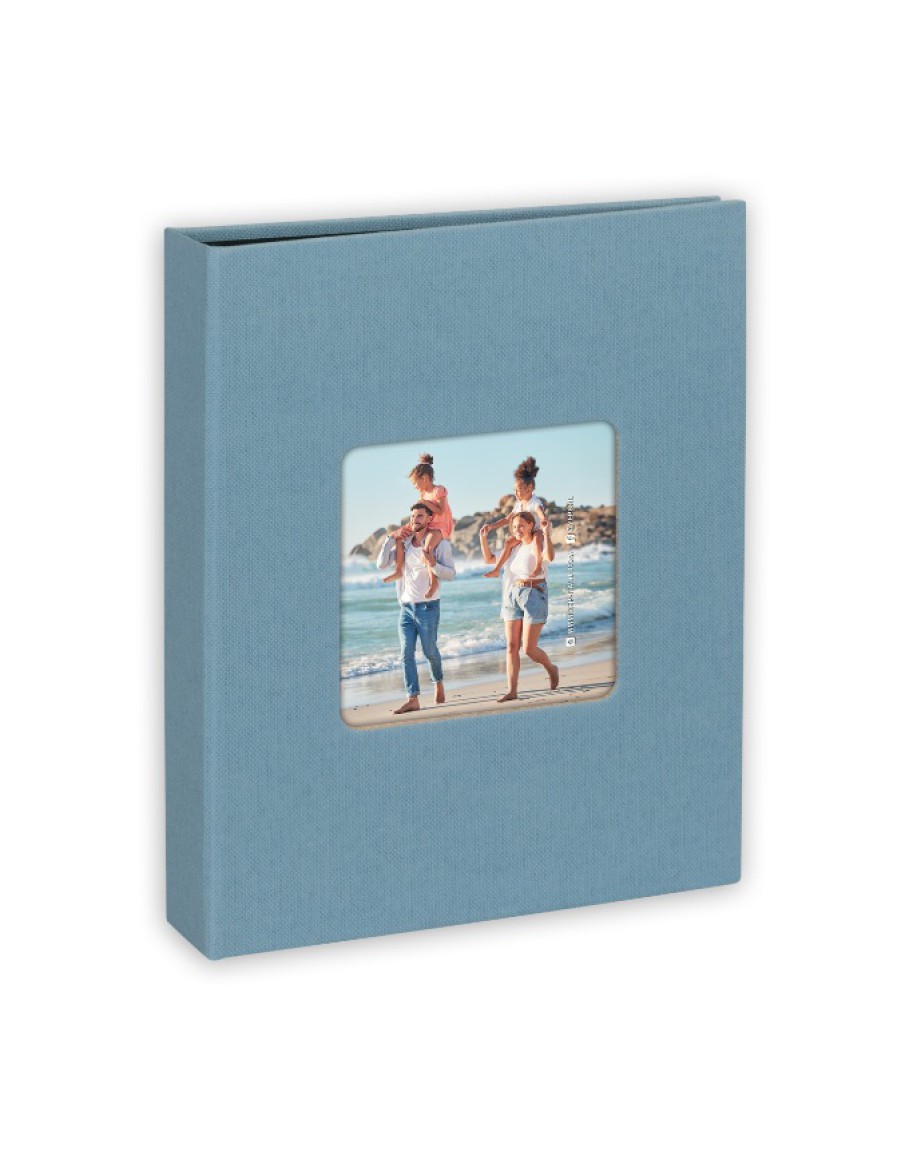 Миниальбом с обложкой из высококачественной  фактурной бумаги и окошком на лицевой стороне для личного фото. В альбом помещается 36 фотографии формата 15x20. В альбоме черные листы. Место для записи нет. Цвета в ассортименте.