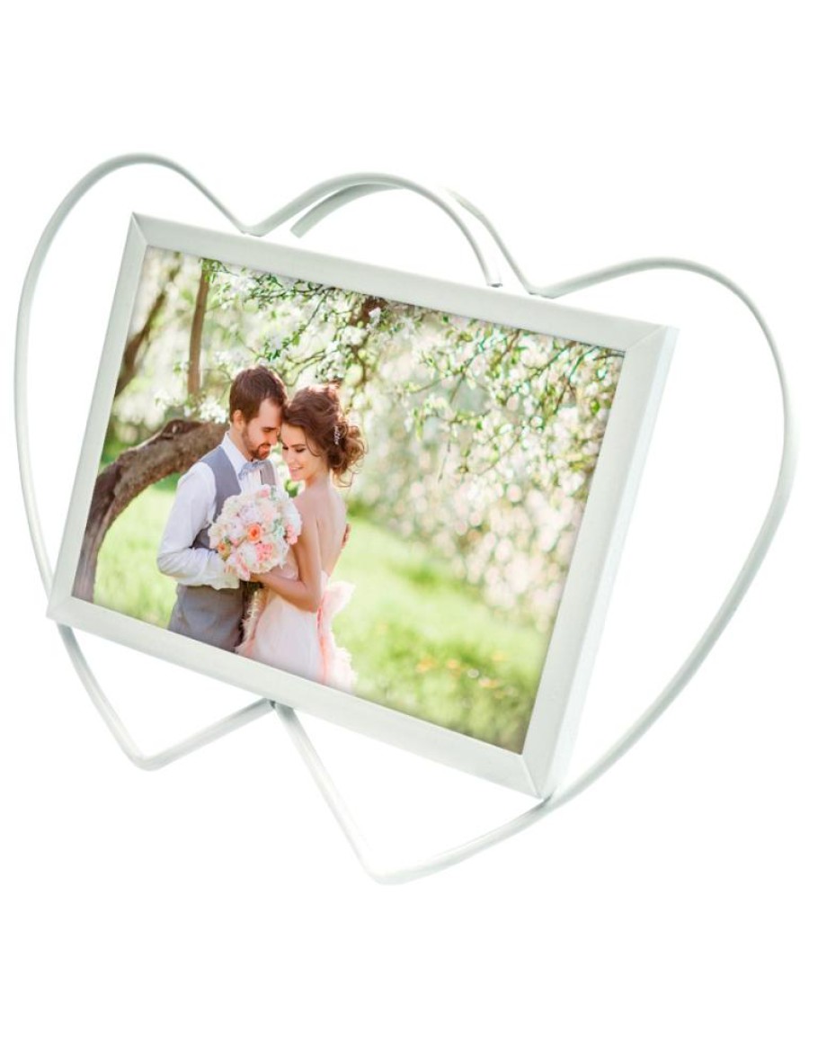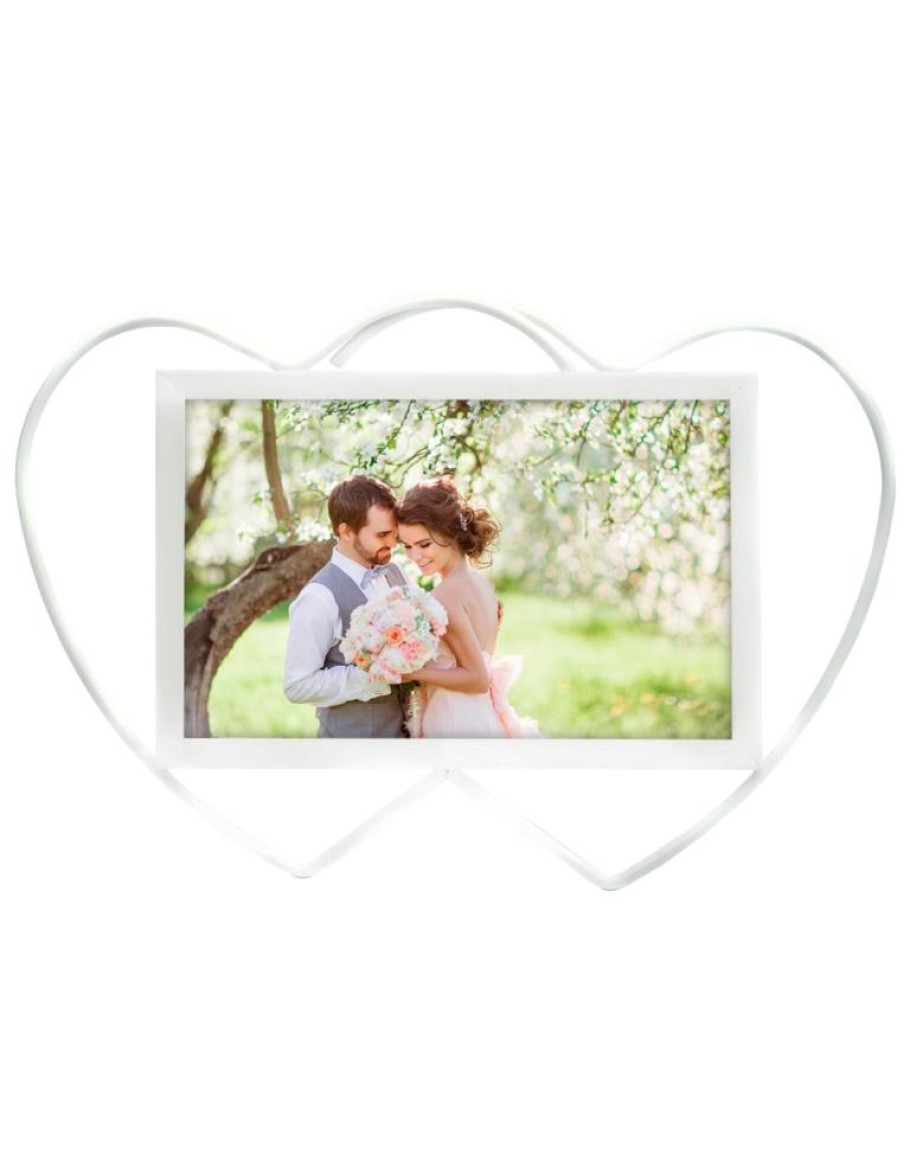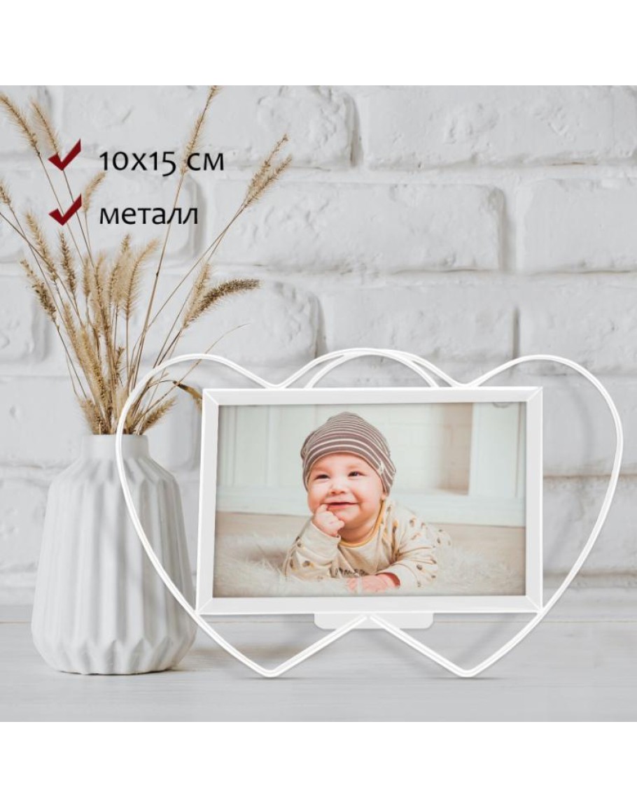 Премиальная металлическая рамка для фотографий формата 10х15 см. Стекло минеральное, прочное (толщина 1.5 мм), задник из плотного листа оргалита, предусмотрена ножка для размещения рамки на столе или полке: как вертикально, так и горизонтально. Дизайн рамки в форме двух сердец хорошо подходит для романтических или семейных фотографий.