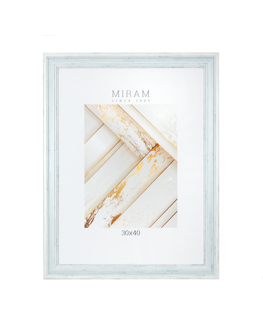 Белая рамка 30x40 из фигурного багета шириной 31 мм с пластиковой защитной вставкой