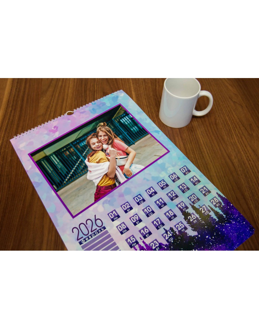 Календари перекидные 13 листов (с обложкой) на пружине. Отпечатаны на полиграфическим способом на мелованной бумаге 250 гр/м. Форматы: 21х30 и 30х42 см - вертикальные.