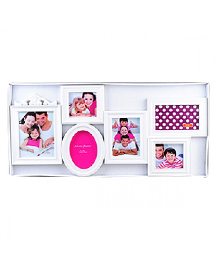 Пластиковая мультирамка на 6 фотографий: 3 фото 10х15 см, 2 фото 10х10 см и 1 фото 13х18 см.