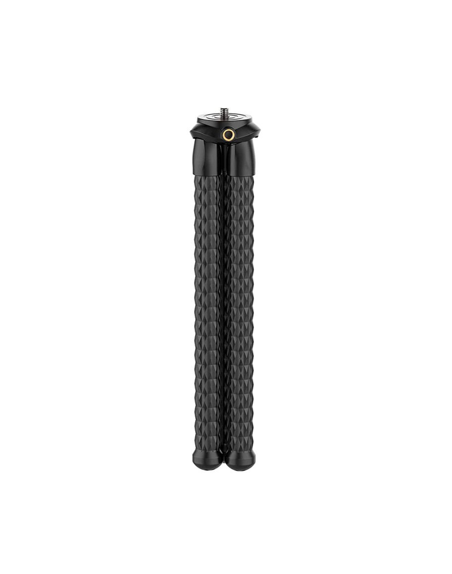 Штатив с гибкими ножками. Может использоваться в качестве настольного, может крепиться на неровные поверхности, трубы, ветки. Ноги выполнены из смеси силикона и пластика, что обеспечивает высокую безопасную нагрузку – легко выдерживает профессиональную зеркальную камеру. Кроме того, резиновые ножки обеспечивают надежный захват в ладони, если использовать в качестве рукоятки для камеры.